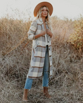 صُمم هذا المعطف الطويل بنقشة مربعات مستوحاة من الطراز القديم، ليضفي لمسةً من الأناقة على مجموعة ملابسك الخارجية. يتميز بياقة أنيقة وجيوب جانبية وأزرار أمامية، ما يجعله مزيجًا مثاليًا بين الراحة والأناقة، مثالي للارتداء فوق الجينز أو الفساتين.