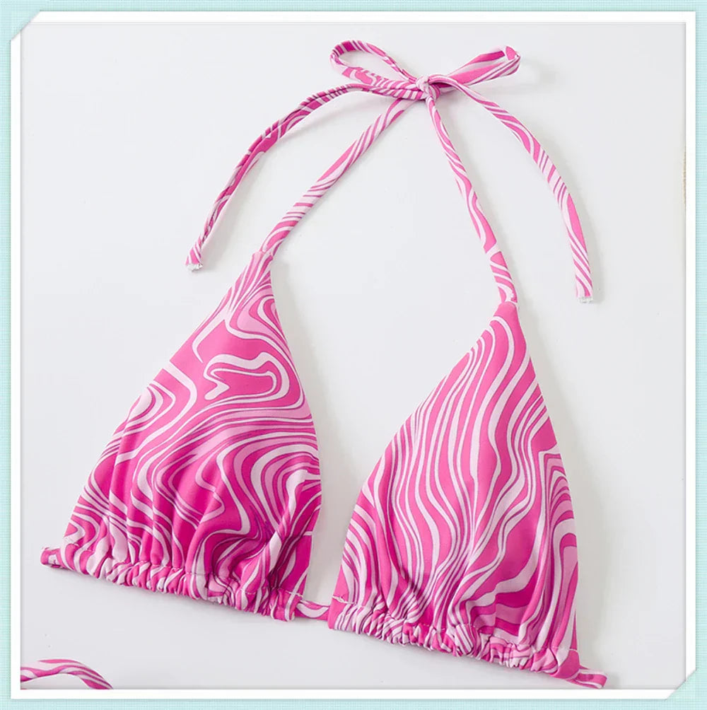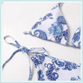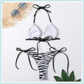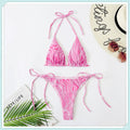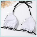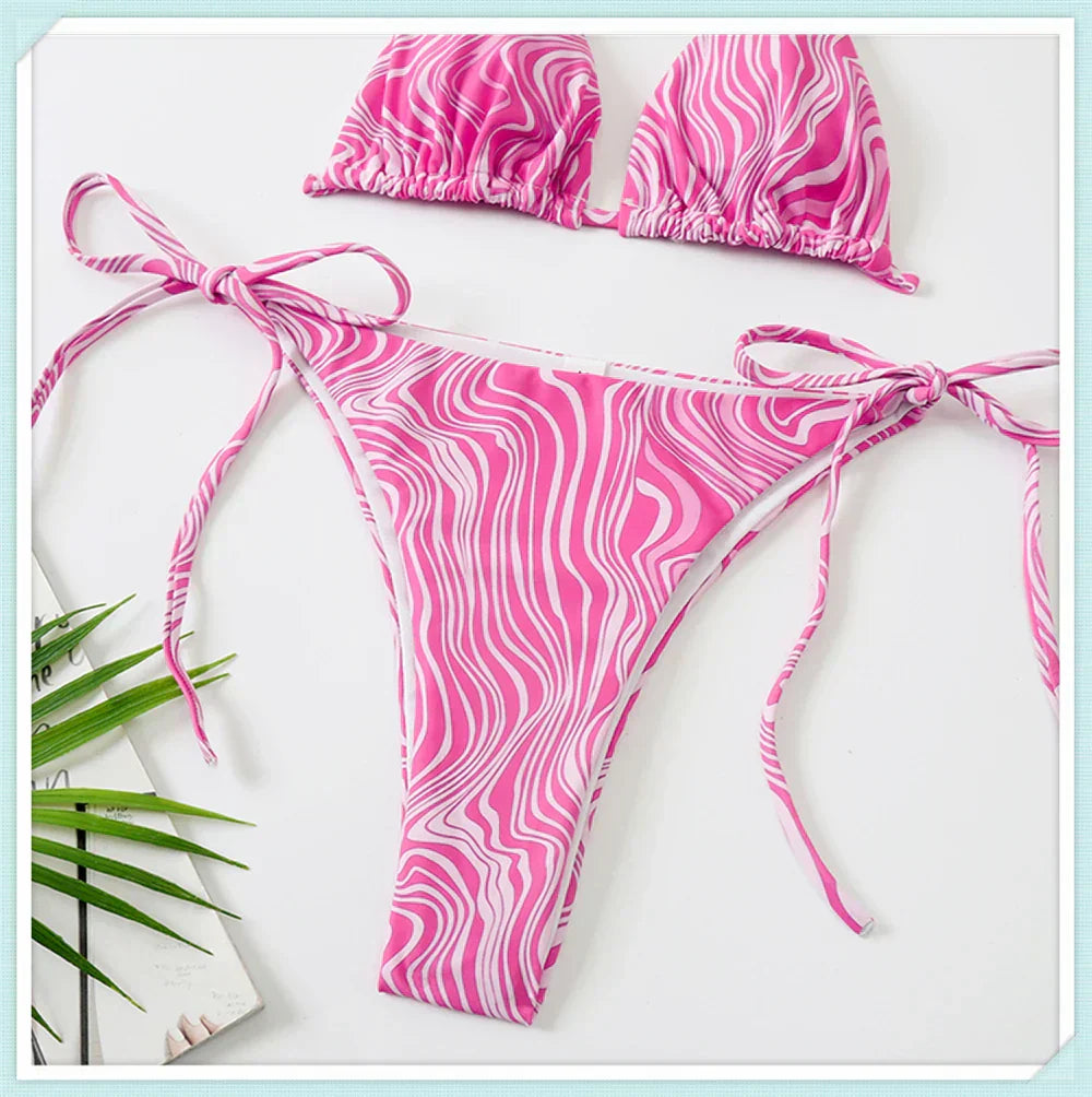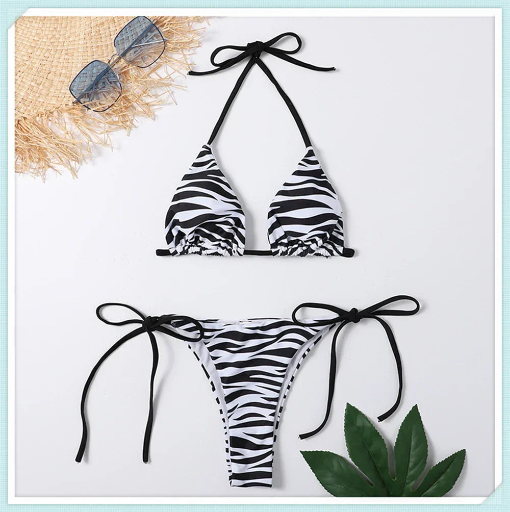 Maak deze zomer een statement met onze kleurrijke triangelbikini met vetersluiting. Of je nu aan het zwembad ligt of geniet van de zon op het strand, met deze bikini zie je er gegarandeerd fantastisch uit!