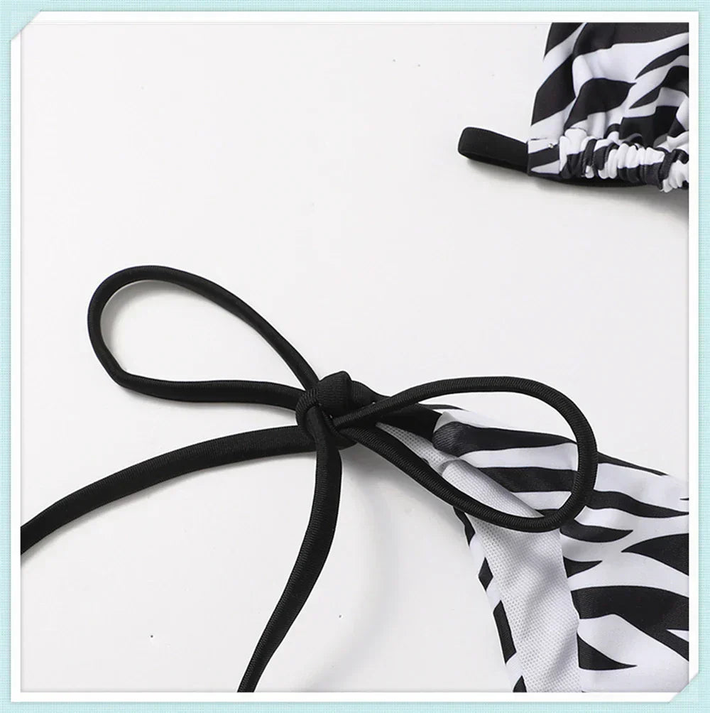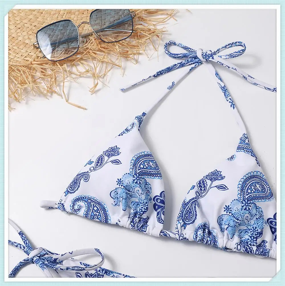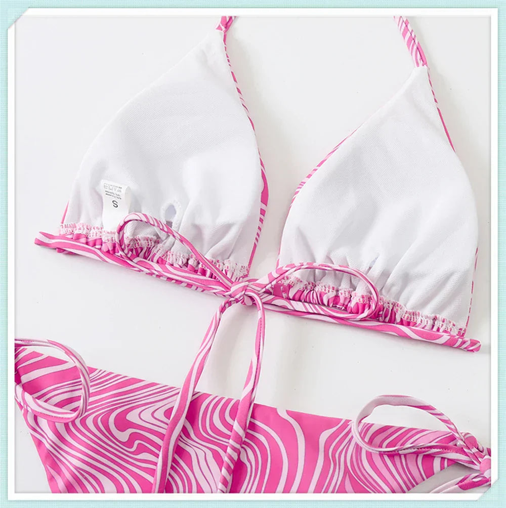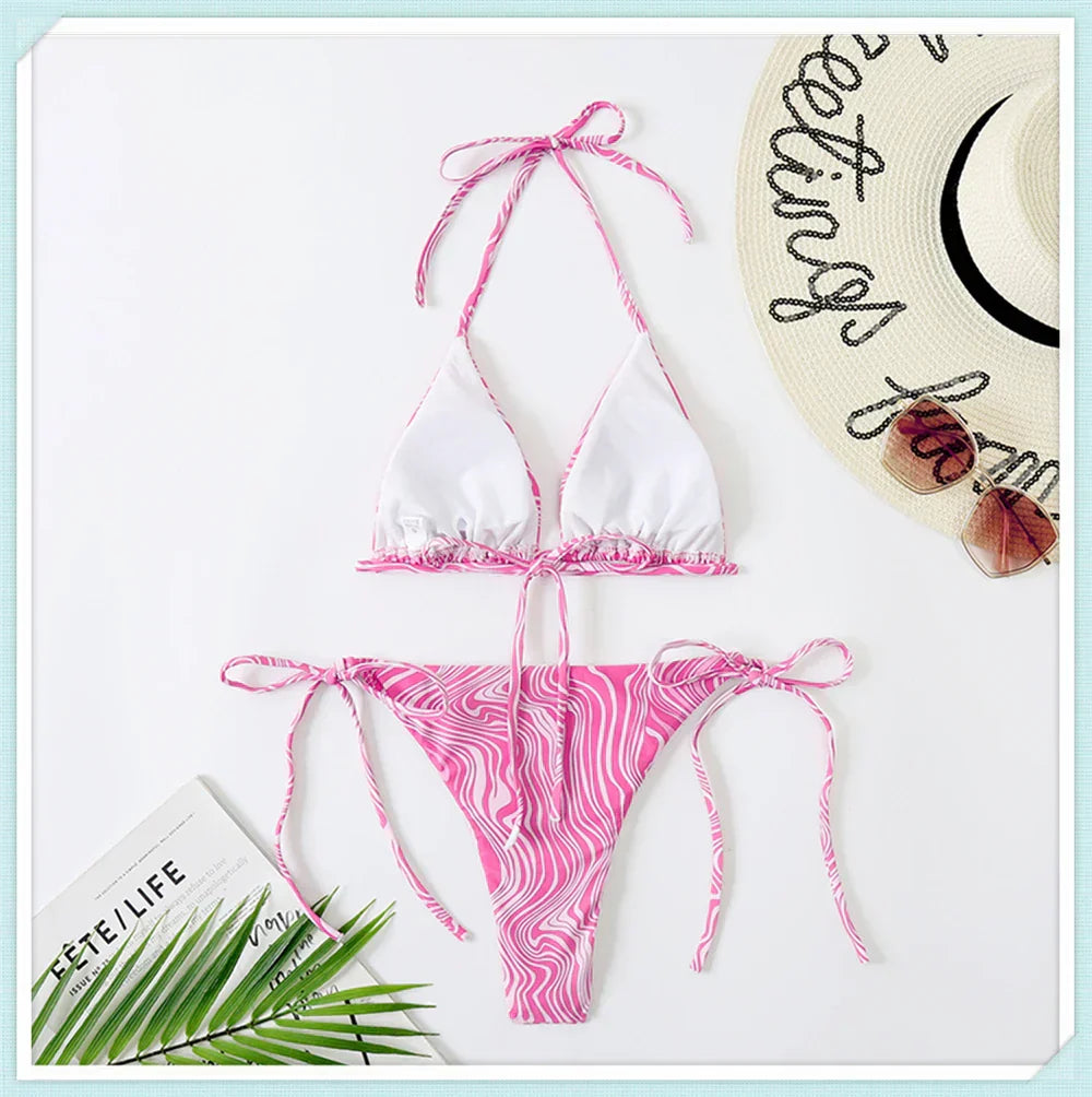 Maak deze zomer een statement met onze kleurrijke triangelbikini met vetersluiting. Of je nu aan het zwembad ligt of geniet van de zon op het strand, met deze bikini zie je er gegarandeerd fantastisch uit!