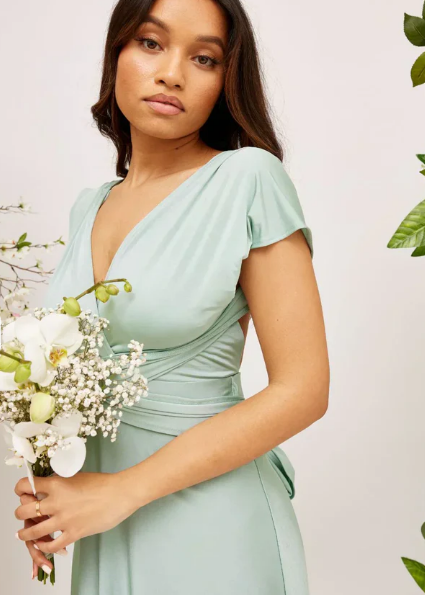 • Detail: multi-way wrap-ontwerp, maxi-lengte die tot op de vloer reikt, ongevoerd