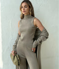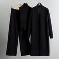 Zijn De perfecte combinatie van verfijning en stijl. Deze set bestaat uit een wijde broek, een mouwloze coltrui en een lange jas, allemaal gemaakt van een luxueuze mix van polyester en viscose voor een comfortabele en elegante look.