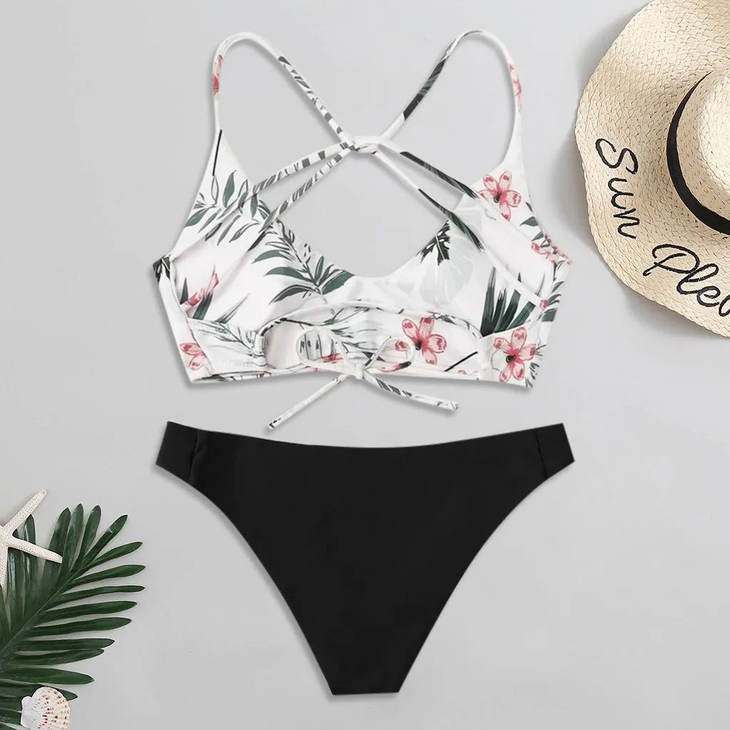 Maak deze zomer een spetterende indruk met ons tweedelige badpak met bloemenprint en gekruiste rug. Of je nu aan het zwembad ligt of geniet van de zon op het strand, met dit badpak zie je er gegarandeerd fantastisch uit!