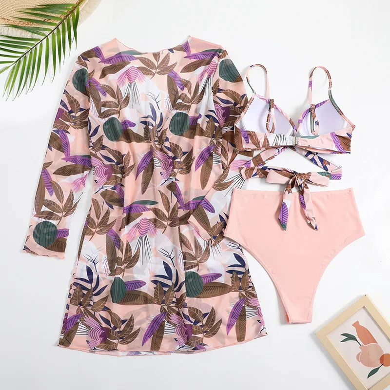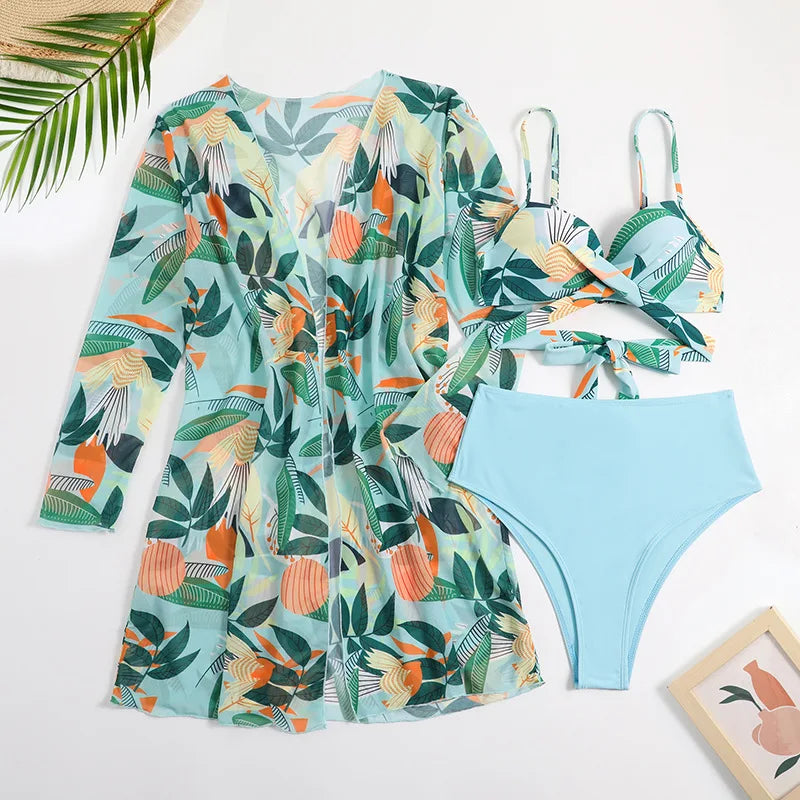 Een stijlvolle en veelzijdige badmodeset die perfect is voor je volgende strand- of zwembaddag. Deze set bestaat uit een bikinibroekje met hoge taille in een effen kleur, een bikinitop met bijpassende print en een bijpassende cover-up met dezelfde print. Dit zijn de belangrijkste kenmerken en voordelen van deze badmodeset: