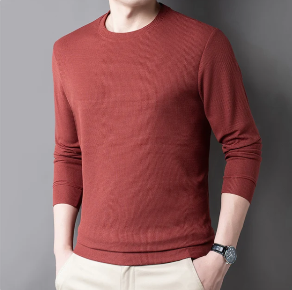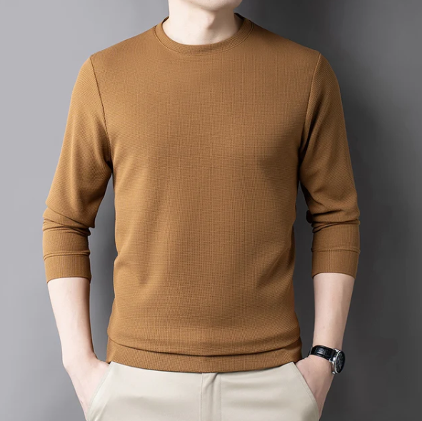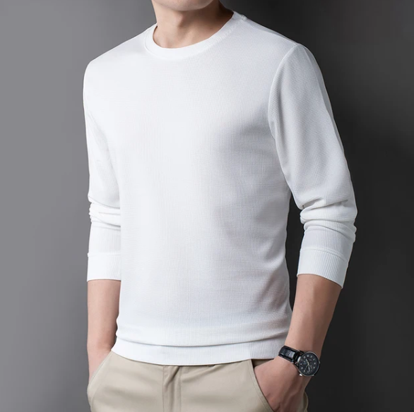 Veelzijdig ontwerp: Met zijn klassieke ronde hals en lange mouwen biedt de Ian Waffle Long Sleeve moeiteloze veelzijdigheid. Of je hem nu los draagt of onder een jasje of trui, hij gaat naadloos over van dag naar avond, waardoor hij geschikt is voor verschillende gelegenheden.