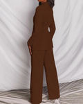 Klassieke bijpassende broek: gecombineerd met een strakke, hoog getailleerde broek creëert deze set een gestroomlijnd silhouet, waardoor deze perfect is voor zowel werk als sociale gelegenheden.