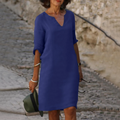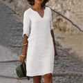 Ontdek moeiteloze stijl met de Jacqui Plain Dress, ontworpen voor de moderne vrouw die waarde hecht aan zowel comfort als verfijning. Deze knielange jurk, gemaakt van een ademende mix van katoen en polyester, is de perfecte keuze voor casual kantoorkleding en een veelzijdige basis voor je garderobe.