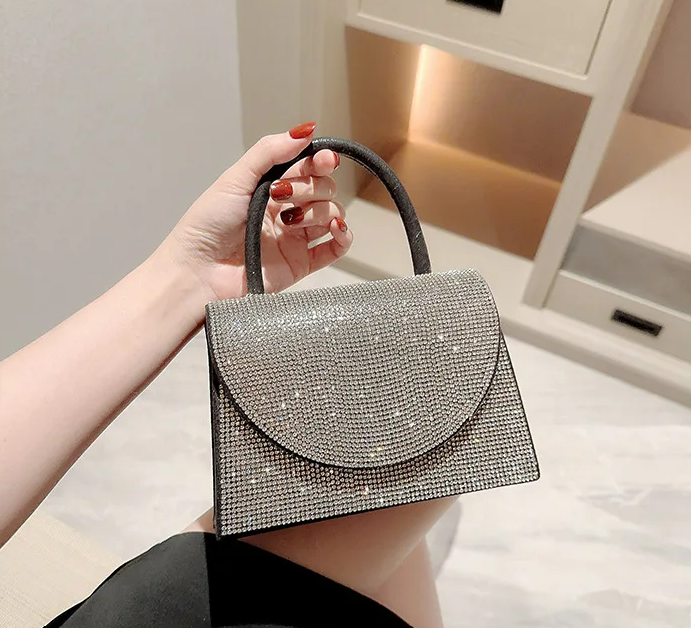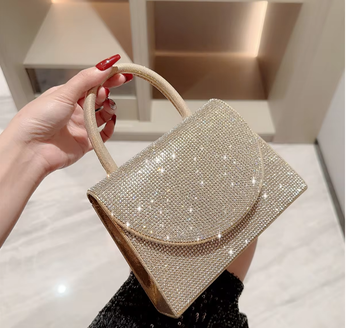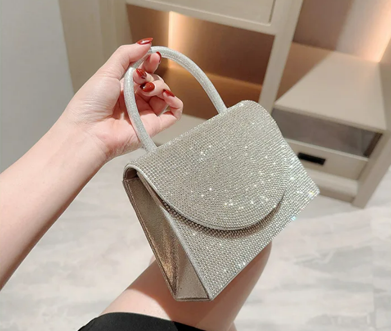 Schitterende strass-steentjes : de handtas is versierd met schitterende strass-steentjes, die het licht prachtig vangen en een glamoureuze touch toevoegen.