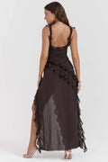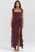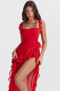 Maak een statement op je volgende evenement met onze Kim Ruffle Dress. Of je nu een bruiloft, cocktailparty of diner bijwoont, met deze jurk val je gegarandeerd op in stijl!