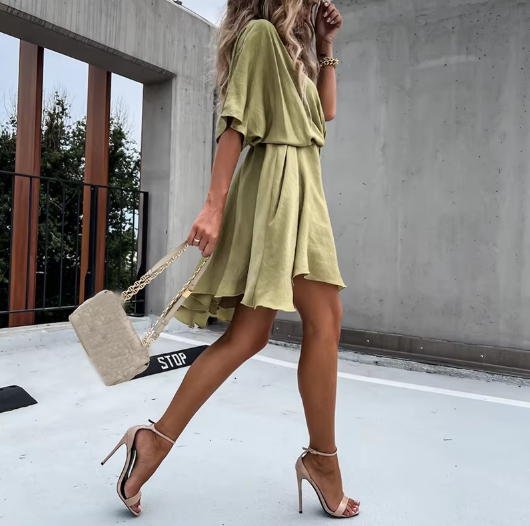 Trek de aandacht en voel je comfortabel in de chique en stijlvolle Leila Loose Mini Dress, perfect voor elke gelegenheid dit seizoen.