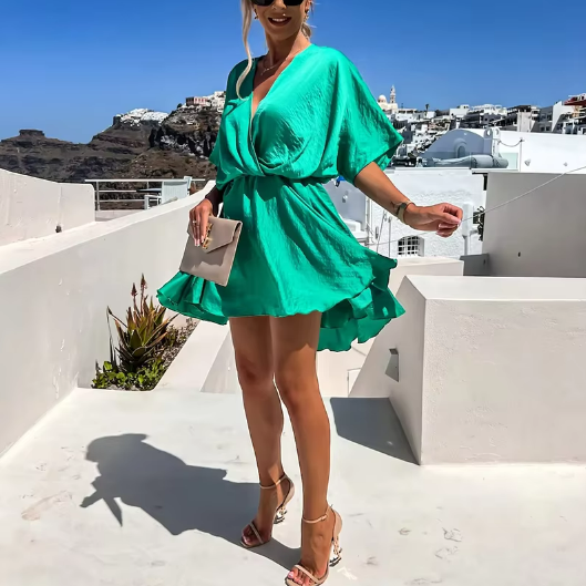 Levendige kleur: de opvallende tint van de Leila Mini-jurk voegt een vleugje kleur toe aan uw garderobe, zodat u stijlvol opvalt.