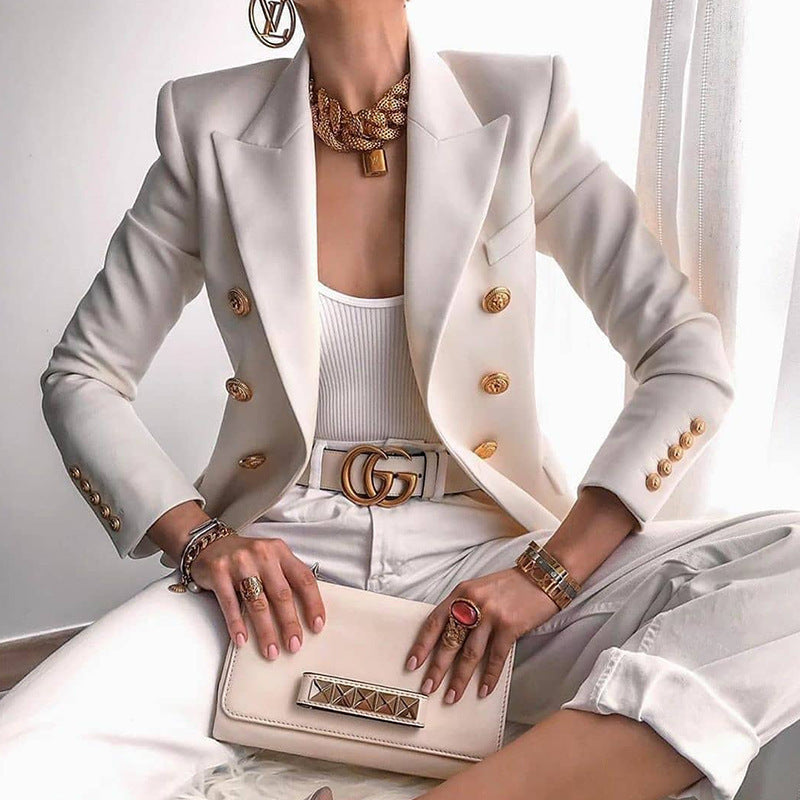 Verfijn je stijl met onze Maria Double Breasted Blazer. Of je nu naar kantoor gaat of een avondje uitgaat, met deze blazer maak je gegarandeerd een statement.