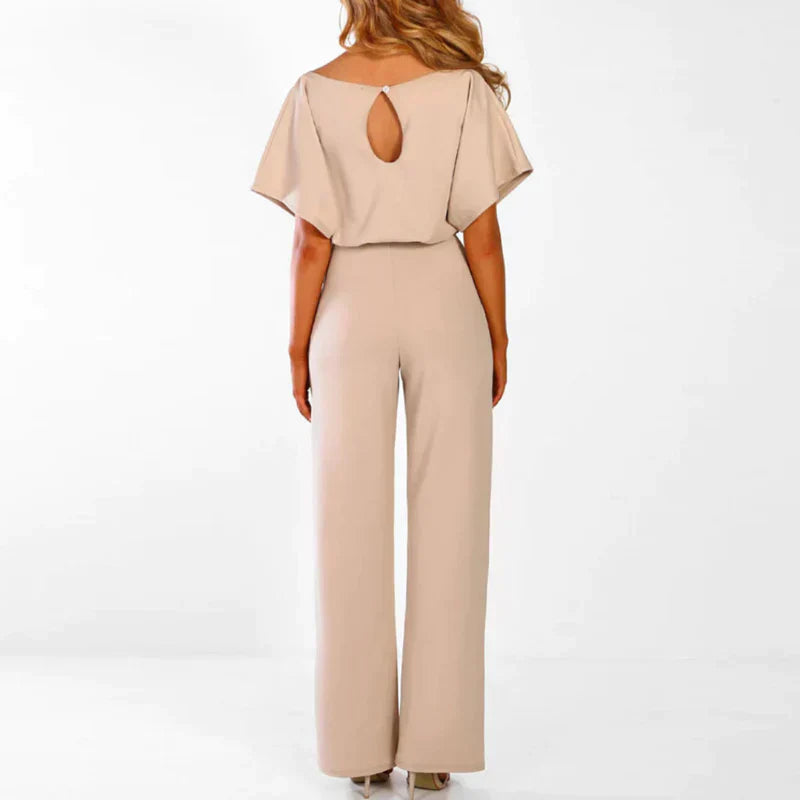 Een chique en veelzijdige aanvulling op je garderobe. Deze jumpsuit heeft een flatterend silhouet en korte mouwen, perfect voor zowel casual als formele gelegenheden.