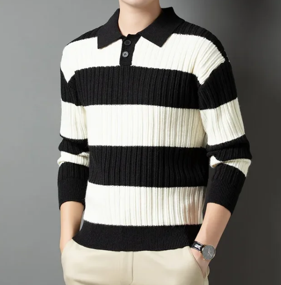 Klassiek strependesign: het tijdloze strepenpatroon voegt een vleugje verfijning toe, waardoor het geschikt is voor zowel casual als semi-formele gelegenheden.