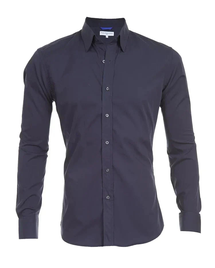 - Klassiek ontwerp : Het overhemd heeft een klassiek ontwerp met een puntige kraag en lange mouwen, waardoor het geschikt is voor verschillende gelegenheden.
