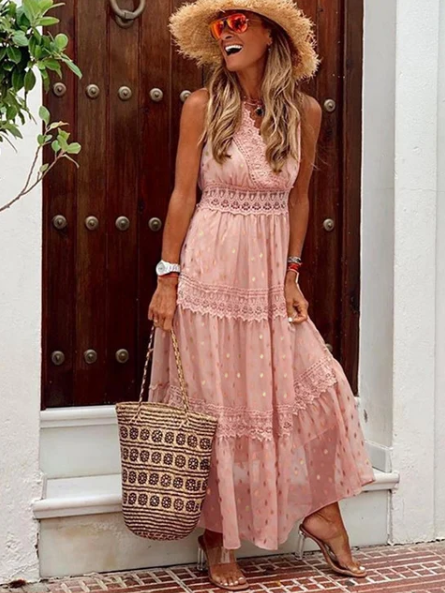 Vang de essentie van bohemian elegantie met de Solana Boho Lace Dress. Perfect voor elke gelegenheid, deze jurk is ontworpen om je een vrijgevochten en stijlvolle uitstraling te geven en je unieke gevoel voor mode te vieren.