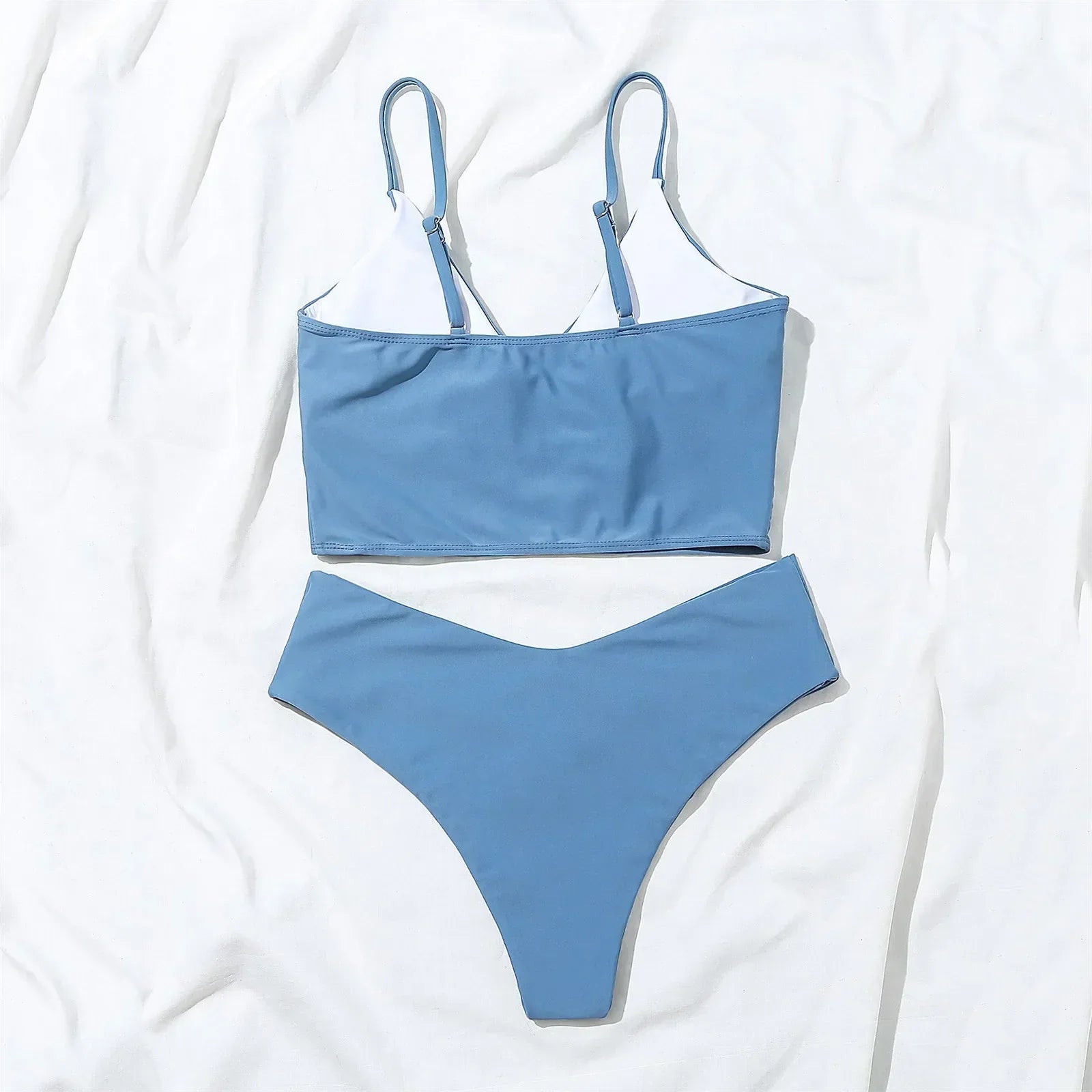 Maak deze zomer een spetterende indruk met ons effen blauwe tweedelige badpak. Of je nu aan het zwembad ligt of een duik in het water neemt, met dit badpak zie je er fantastisch uit en voel je je fantastisch!