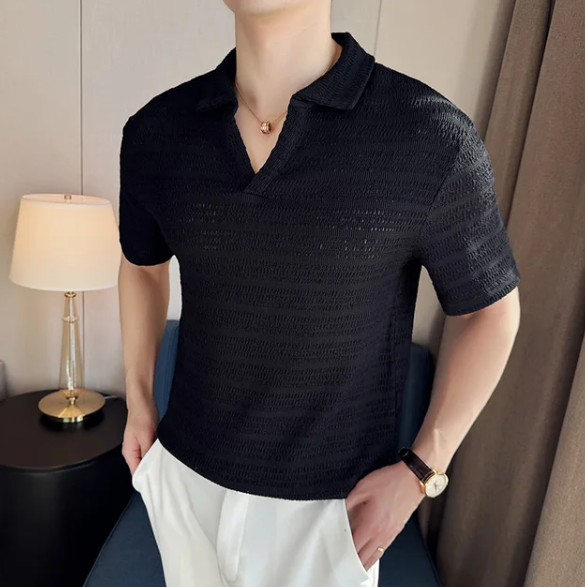Een moderne en stijlvolle variant op het klassieke polodesign. Dit shirt is met oog voor detail gemaakt en heeft unieke holle patronen die een eigentijdse touch geven aan je casual garderobe.