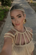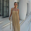 Elegance meets playfulness — this flowing maxi dress features rope straps and beautifully pleated fabric, perfect for any occasion that calls for a statement.