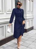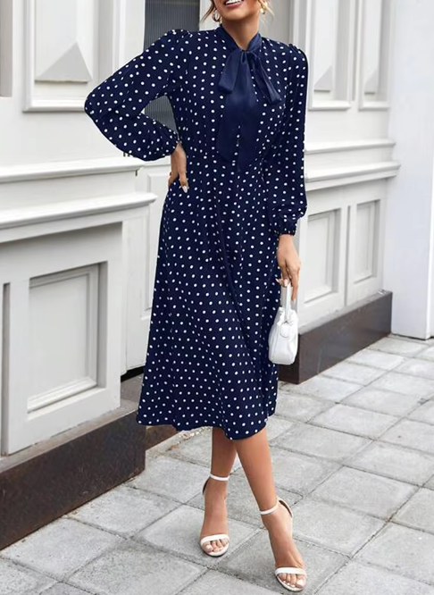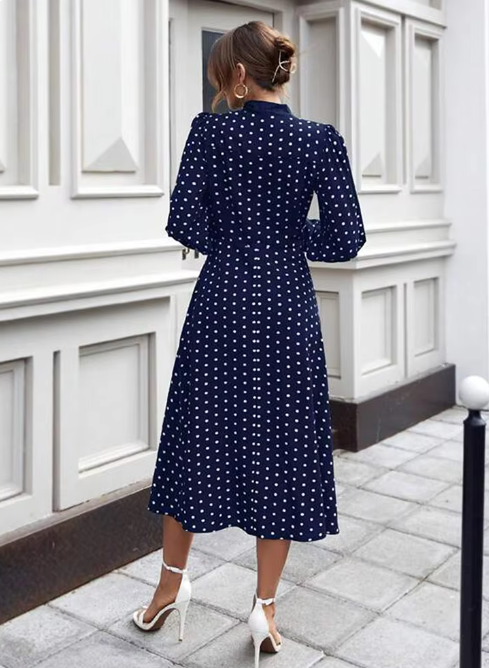 Playful yet refined, this polka dot midi dress blends vintage charm with modern flair — an easy choice when you want to feel effortlessly feminine.