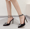 • Detail: Heart-shaped embellishment, adjustable ankle strap, pointed toe, satin finish