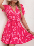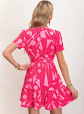• Detail: Abstract print, wrap front, belt detail, short sleeves, mini length